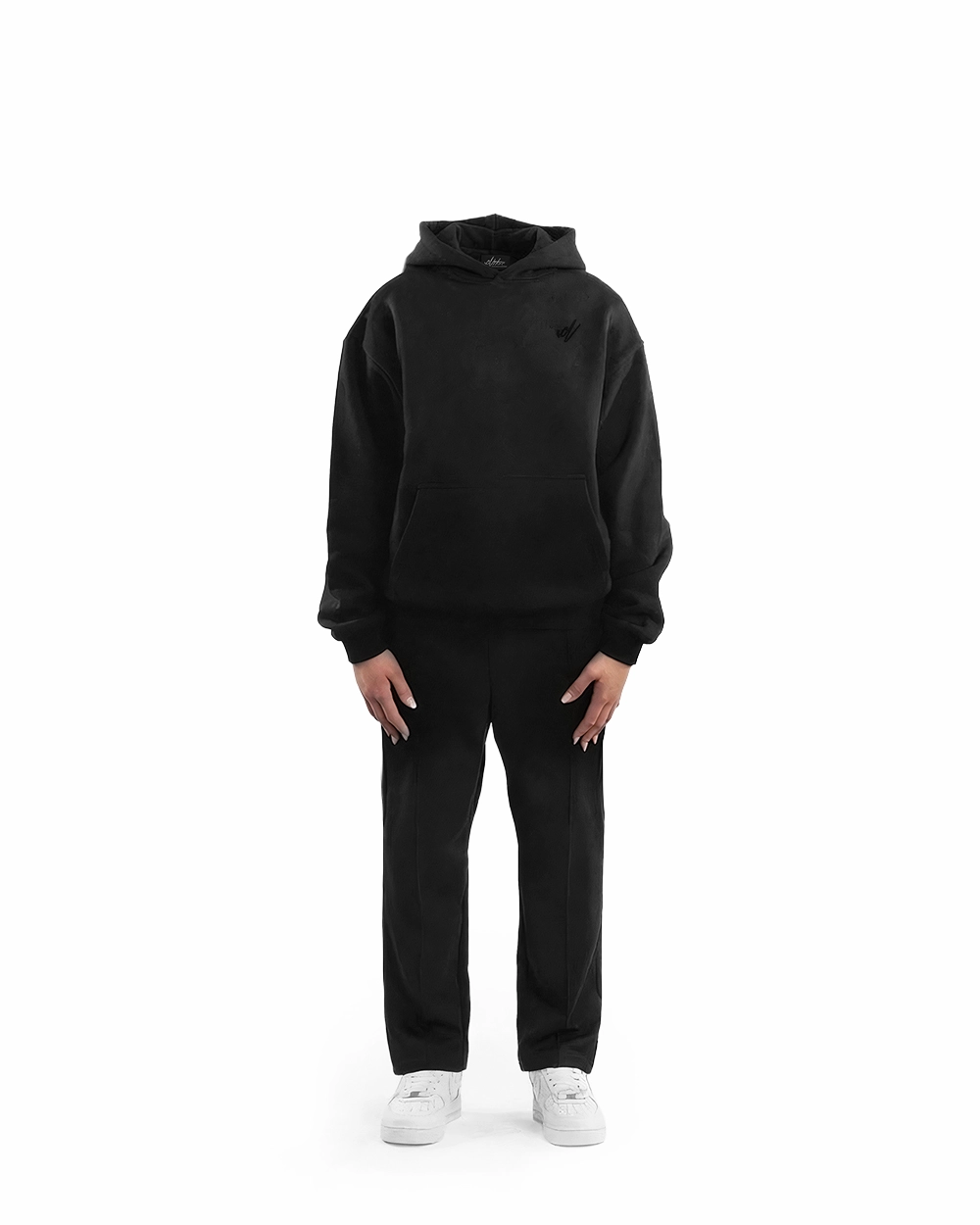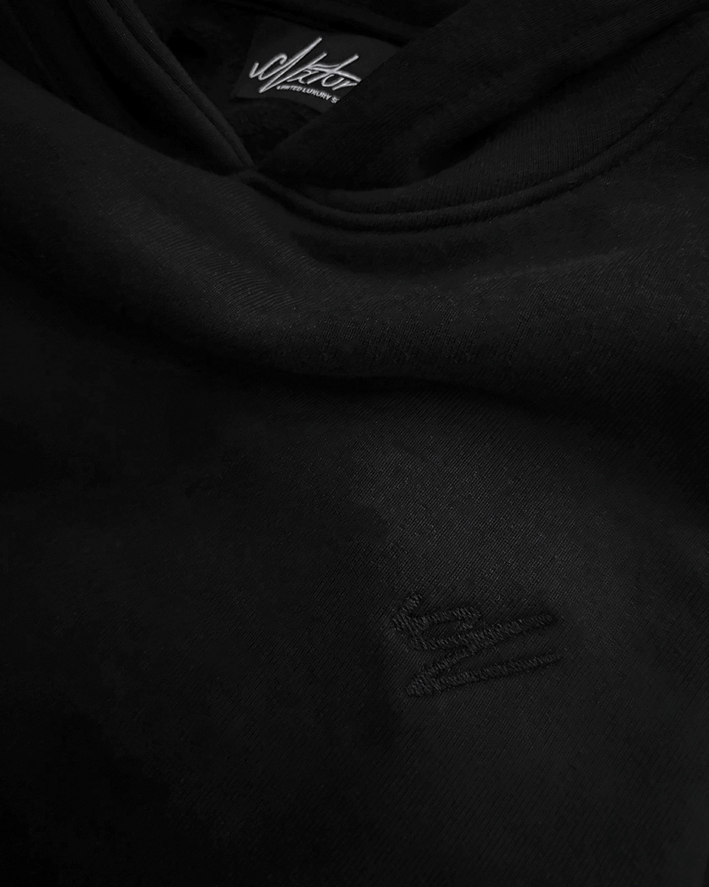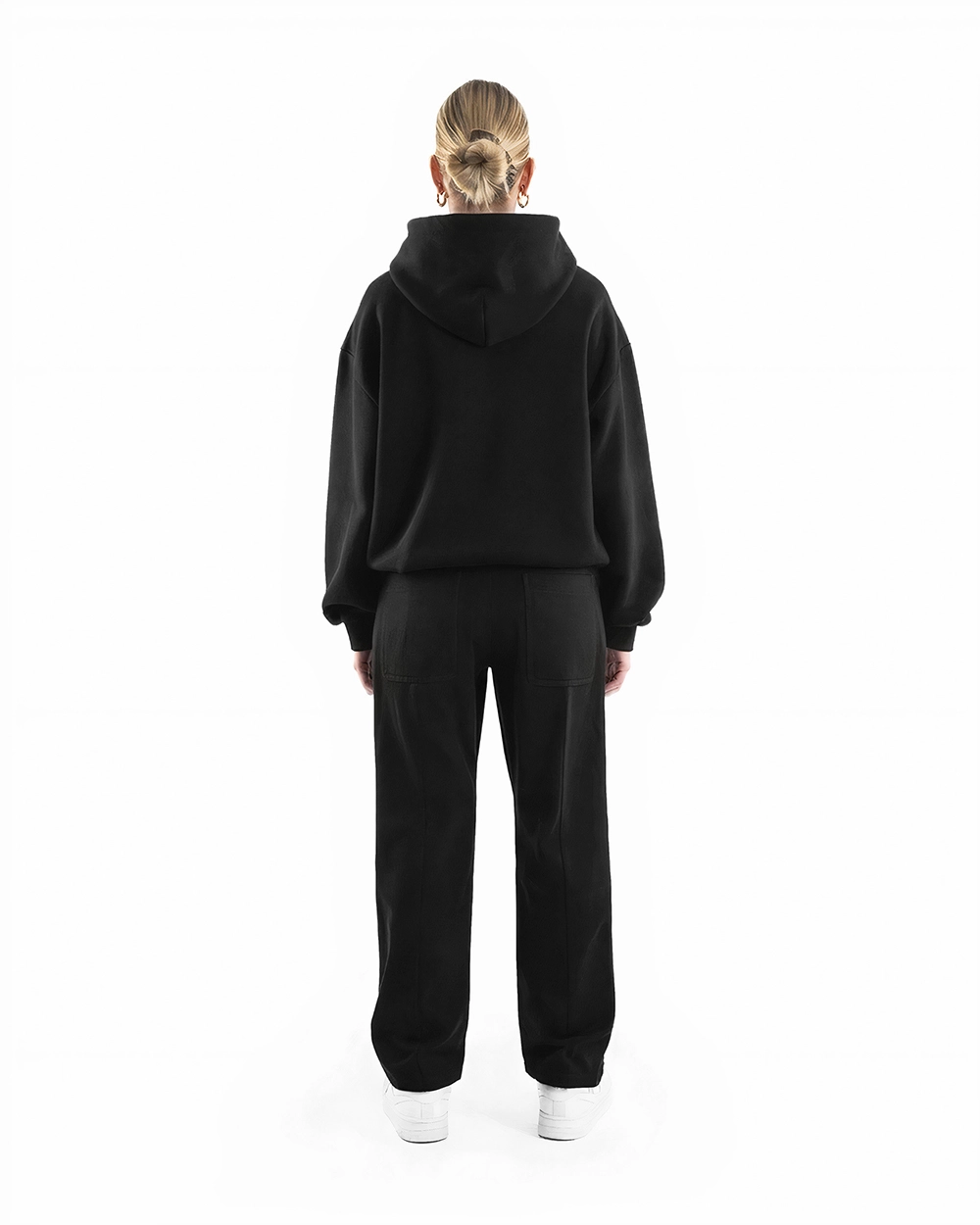 The hoodie in Black is cut in a relaxed, oversized boxy fit, designed for comfort and structure. Made from 100% organic cotton in heavyweight 800GSM fabric, it delivers a defined shape and striking volume.